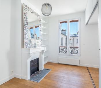 Baigné de lumière et sans vis-à-vis, ce bien séduit par son charme parisien avec parquet et cheminée.