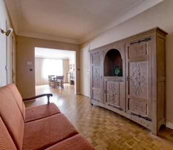 Il offre un beau potentiel de rénovation et se compose d'une vaste entrée, d'une réception lumineuse de 30 m² avec cheminée fonctionnelle, de deux grandes chambres (3ème possible), d'une cuisine, d'une salle de bains et de toilettes séparées.